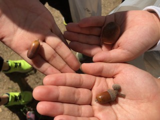 大きいものや小さいもの、太っているものや細いもの、つるつるしたもの、ぼうしをかぶっているものなど、いろんなどんぐりを子どもたちは見つけていました。