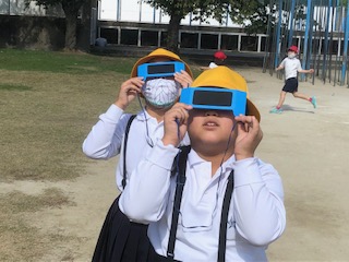 太陽が見えた時は、児童はとても驚いていました。