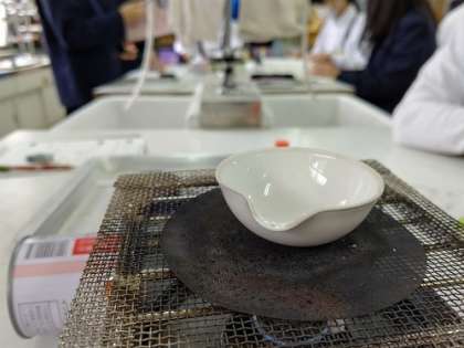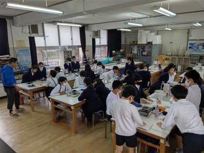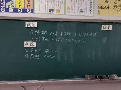 理科室において、「5種類の水よう液はどうすれば区別することができるだろうか」という問題で、実験を行っています。