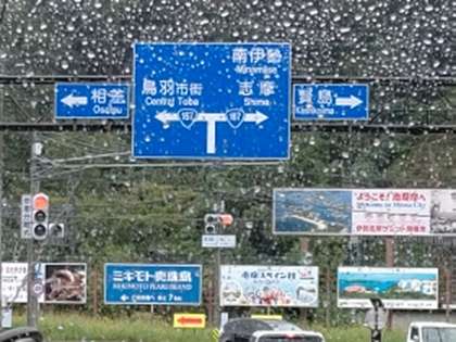鳥羽市に入りました。第二伊勢道を志摩方面に向かっています。志摩スペイン村まで14kmです。