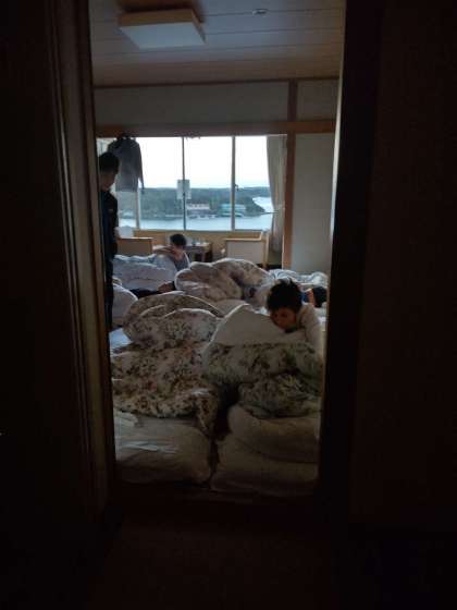 6時起床です。今から洗面着替え、布団、荷物整理、部屋掃除です。