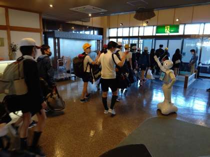 ペッパー君の「かしこ」さんも見送ってくれています。