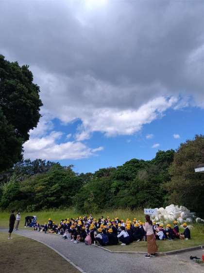活動が終了しました。全員、奨励服に着替えて集合しています。