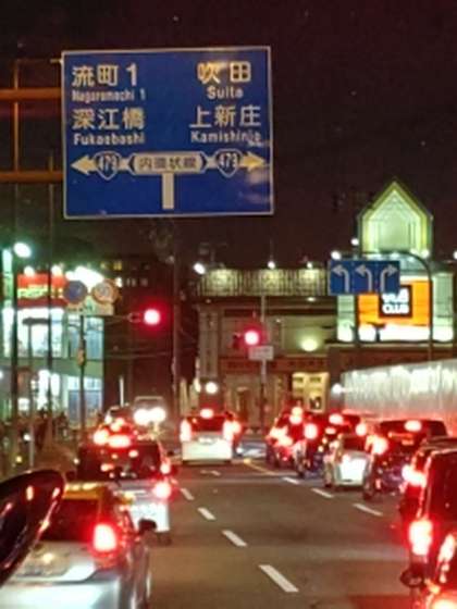 内環状線に入る右折待ちで渋滞しています。さらに遅れそうです。
