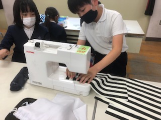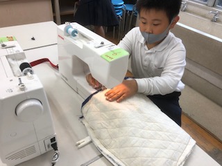 手さげ袋を作っている子は、ミシンを上手に使っていました。