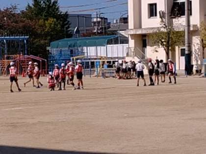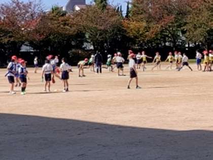 今日の午前中は気温が上がらず肌寒く感じますが、運動場では子どもたちが元気よくタグラグビーを頑張っていました。