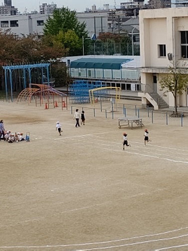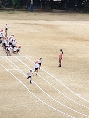運動場のトラックを約半周のかけっこです。