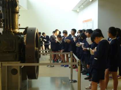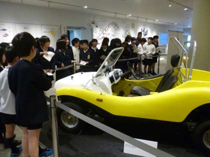 全体でビデオを見た後は、展示されている初期から現在までの車の変遷を、クラスごとに見学、限られた時間ながら、子ども達のメモを取る手が止まりません。