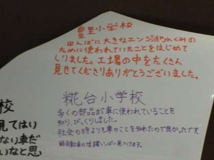 ここに、来場した学校の代表児童が一言ずつコメントを残しているんです。