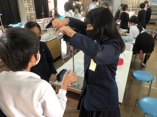 5年生は、この難しい実験にも、グループで協力して取り組んでいました。