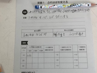 めあては、『ふれはばを変えると、1往復する時間は変わるのだろうか。』です。