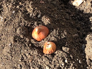 ずいぶん小さな球根(写真参照)ですが、春にチューリップが咲くのかどうか楽しみですね。
