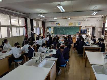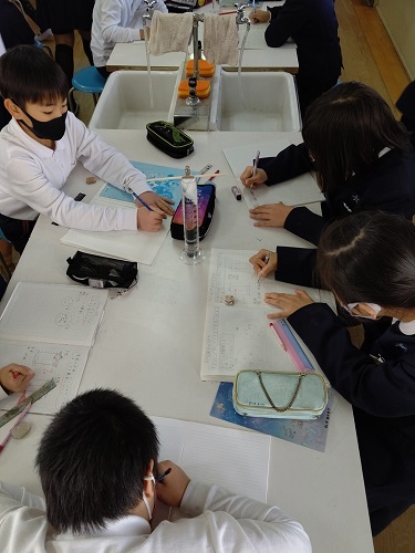 食塩や砂糖を水に入れたときのようすを観察しています。