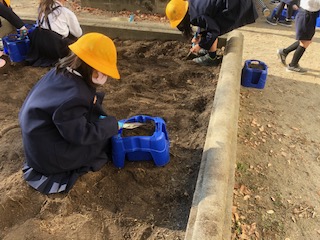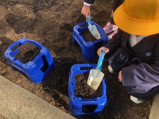 1年生は、1時間目にチューリップの球根を植えました。