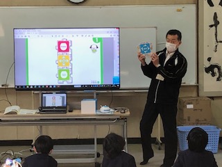 12月9日(水)、今日は、校長先生が2年生にプログラミング学習の指導をしてくださいました。