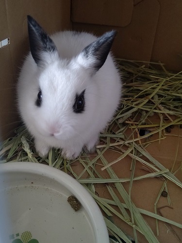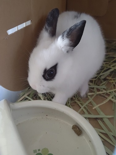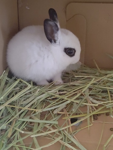 新しくもう1羽のウサギが来てくれました。もう少し慣れるまでゲージの中で過ごします。2羽で一緒に飼育小屋で過ごせるまで、もう少し待ってくださいね。