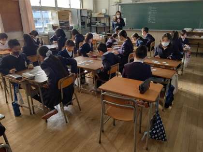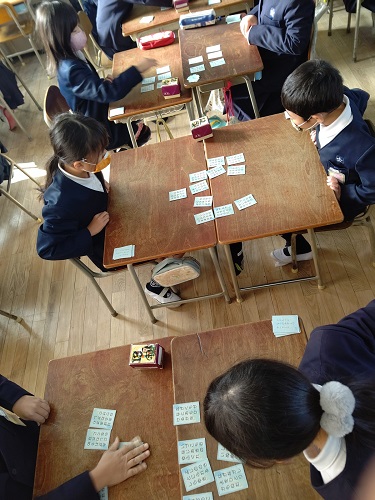 百人一首を一日に3首は覚えて100首全部を覚えるようにしています。みんな真剣に取り組んでいます。