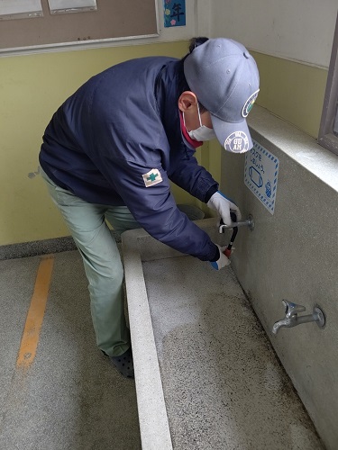 管理作業員さんが、水道の点検をしてくれています。