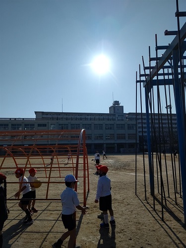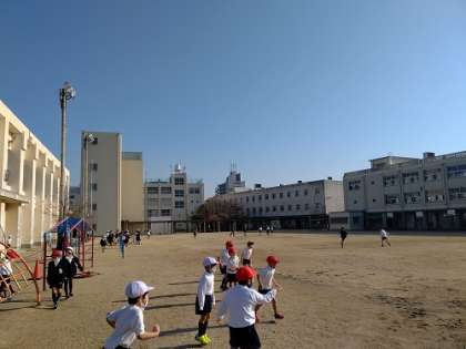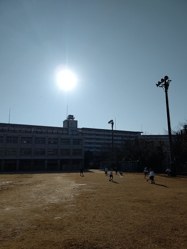 朝の登校時は氷が張るくらいに冷えていましたが、ようやく少し暖かくなってきました。運動場で元気よく遊んでいます。