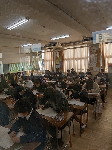 本日の2日目は、6年生、5年生、4年生、3年生が、2時間目に算数、3時間目に理科、6年生と5年生は4時間目に英語の調査を受けました。皆が、落ち着いて真剣に受けていました。