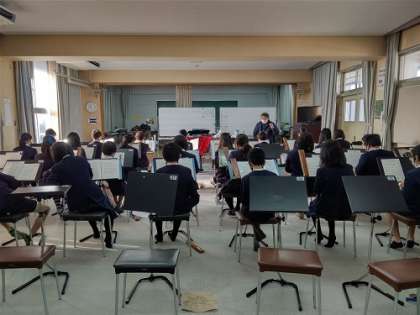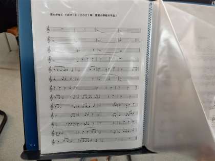 音楽の授業で「君をのせて」のリコーダー練習をしています。