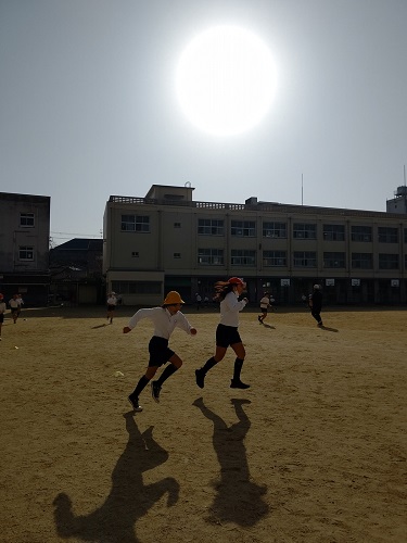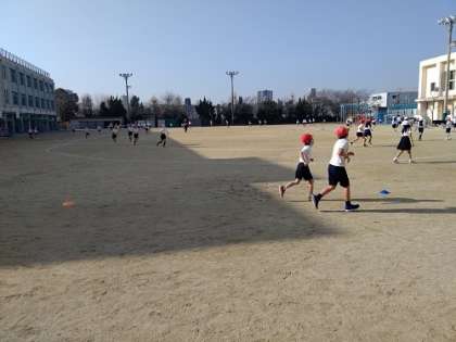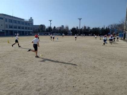 体育の授業で、かけ足大会に向けて、練習をしています。