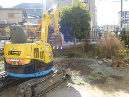 ○1枚目:重機も入り、いよいよ「ビオトープ」の工事がスタート。