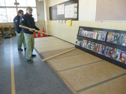 畳スペースをひろげ、新しく書架も取り付けます。