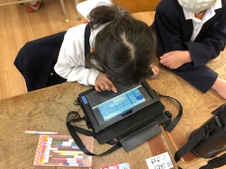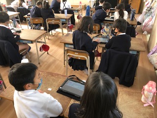 そのため1年生は、今日の3,4時間目にタブレットの使い方の学習をしました。