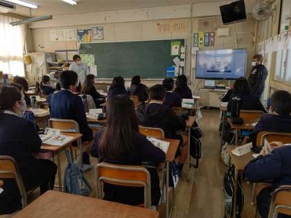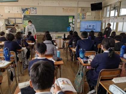 C−NETのウィック先生と「なりたい職業とその理由を伝えよう。」の学習をしています。
