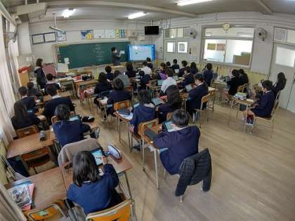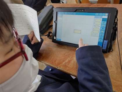 タブレット端末を用いて、「フローチャートを知ろう」の学習をしています。