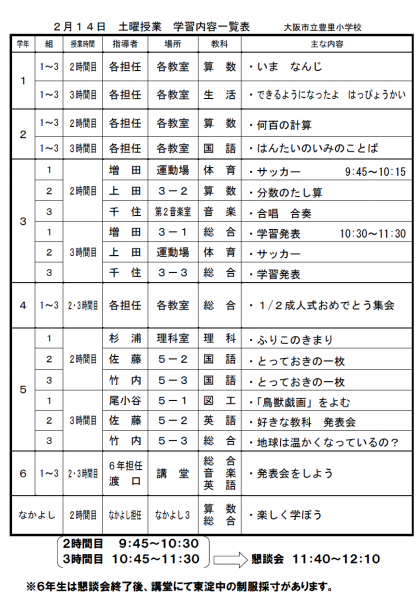 2月14日 土曜授業 学習内容一覧