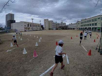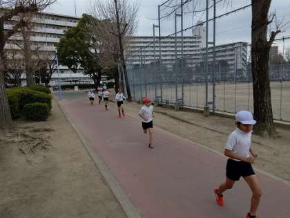運動場と豊里中央公園の外周を使って、タイムを計っています。