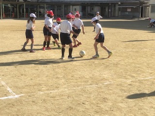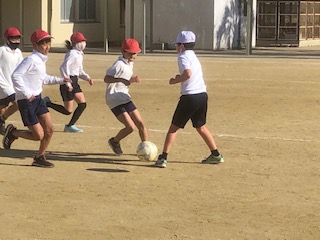 冬の体育は、常に動いていないと寒いので、みんな元気にボールを追いかけています。