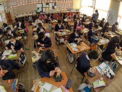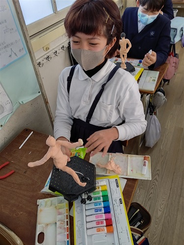 「12年後のわたし」を題材に、針金細工に粘土で形作っています。