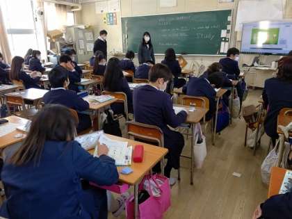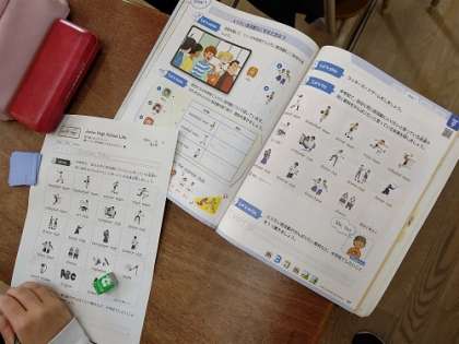 英語で「中学校で入りたい部活動などを伝え合おう」という内容で学習しています。