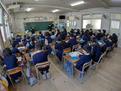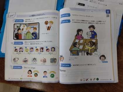 C−NETのウィック先生と「人の職業などを伝えよう。」の学習をしています。