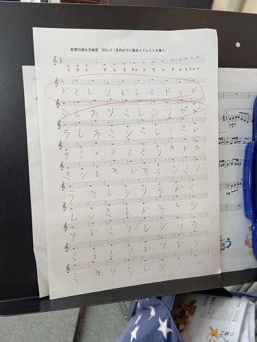 音楽で、楽譜の読み方の練習をしています。