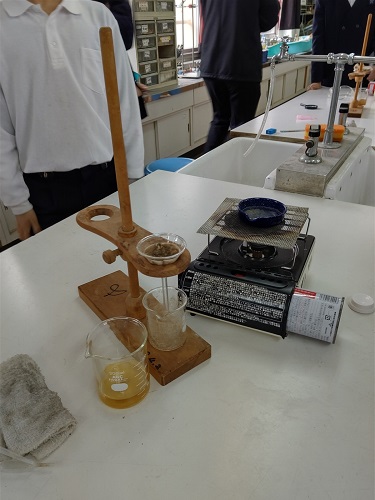 理科で、「塩 こしょうの中から食塩を取り出すには」の実験を行いました。