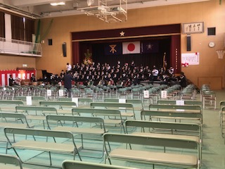 音楽の時間に少しずつ練習をして、今日初めて大きな舞台(講堂)で発表しました。