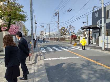 東淀川区では、毎月7日(今月は8日)、交通量の多い場所に地域やPTAの方が立ってくださったり、自転車や青パトで巡回してくださる『見守るデー』を実施しています。