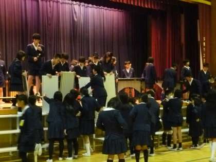 5年生が総出で、音楽会の会場設営を行っていました。