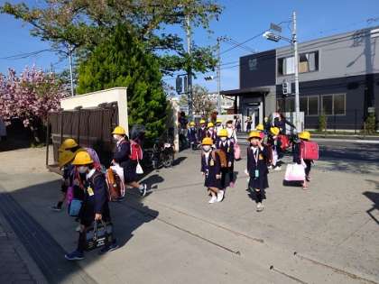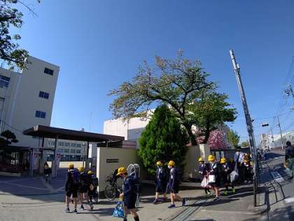 豊里小学校区は広いため、黄色線の道路を何か所かで渡らないといけない児童があります。横断歩道や信号のないところの横断は危険なので、「横断歩道のある所まで行ってね。」と呼びかけをしていますが、ご家庭でもお話しいただければと思います。
