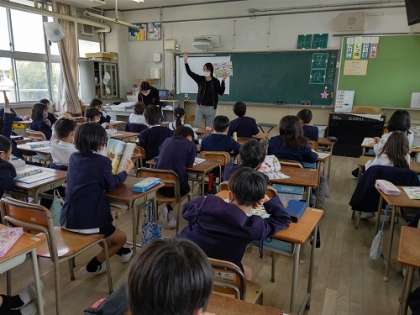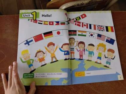 C−NETのアナ先生と「世界のいろいろな国のあいさつ」の学習をしています。