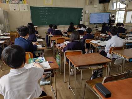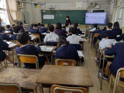 習熟度別少人数授業で、「線対称の図形」について学習しています。