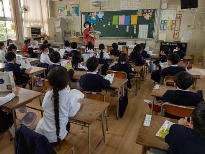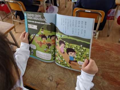 おんがくにあわせてからだをうごかしましょう。「さんぽ」のうたをきいています。