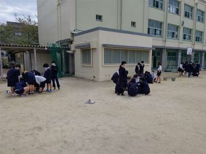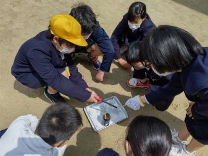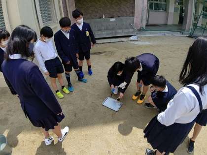 「ものの燃え方と空気の動き」の実験をしました。ジュースの350ml缶を用いて、ひとつは缶の下の方にいくつか穴をあけて風のとおりを作り、もうひとつはそのままの缶です。火をつけた割り箸をそれぞれに入れて、よく燃えるのはどちらかを予想し、観察しました。