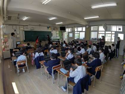 3年生は、今日と明日で、Chromebookへのログインと、双方向通信ができるように、GoogleClassroomの設定を行います。一つ一つの手順を落ち着いて確認しながら、進めることができました。