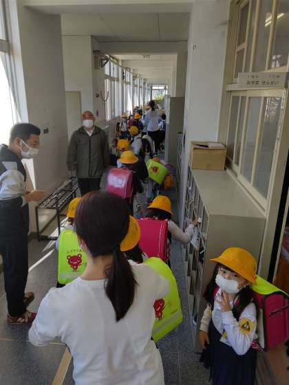 遅くなりましたが、本日の1年生の集団下校の準備ができました。 14時43分に学校を出ます。
