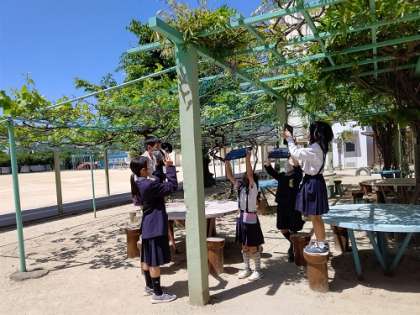 3時間目に校庭の植物や生き物をノートパソコンのカメラ機能を使って、観察しました。